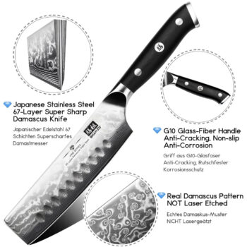 VivaKnives™ 6.5″ Nakiri Chef Knife – Damascus Stainless Steel Kitchen Knife with Ergonomic G10 Handle