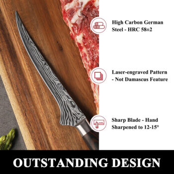 VivaKnives™ 6″ Boning & Fillet Knife – High-Carbon Stainless Steel Kitchen Knife with Pakkawood Handle